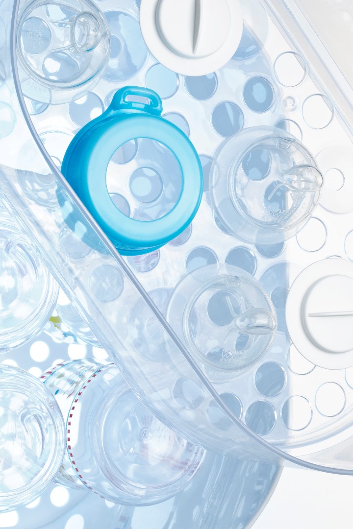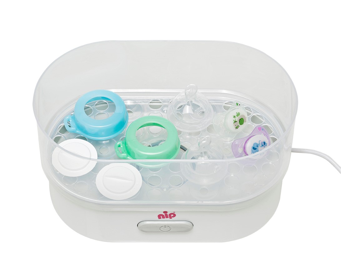› parní sterilizátor nabízí flexibilitu, neb jej lze použít i bez koše na láhve / dudlíky a příslušenství